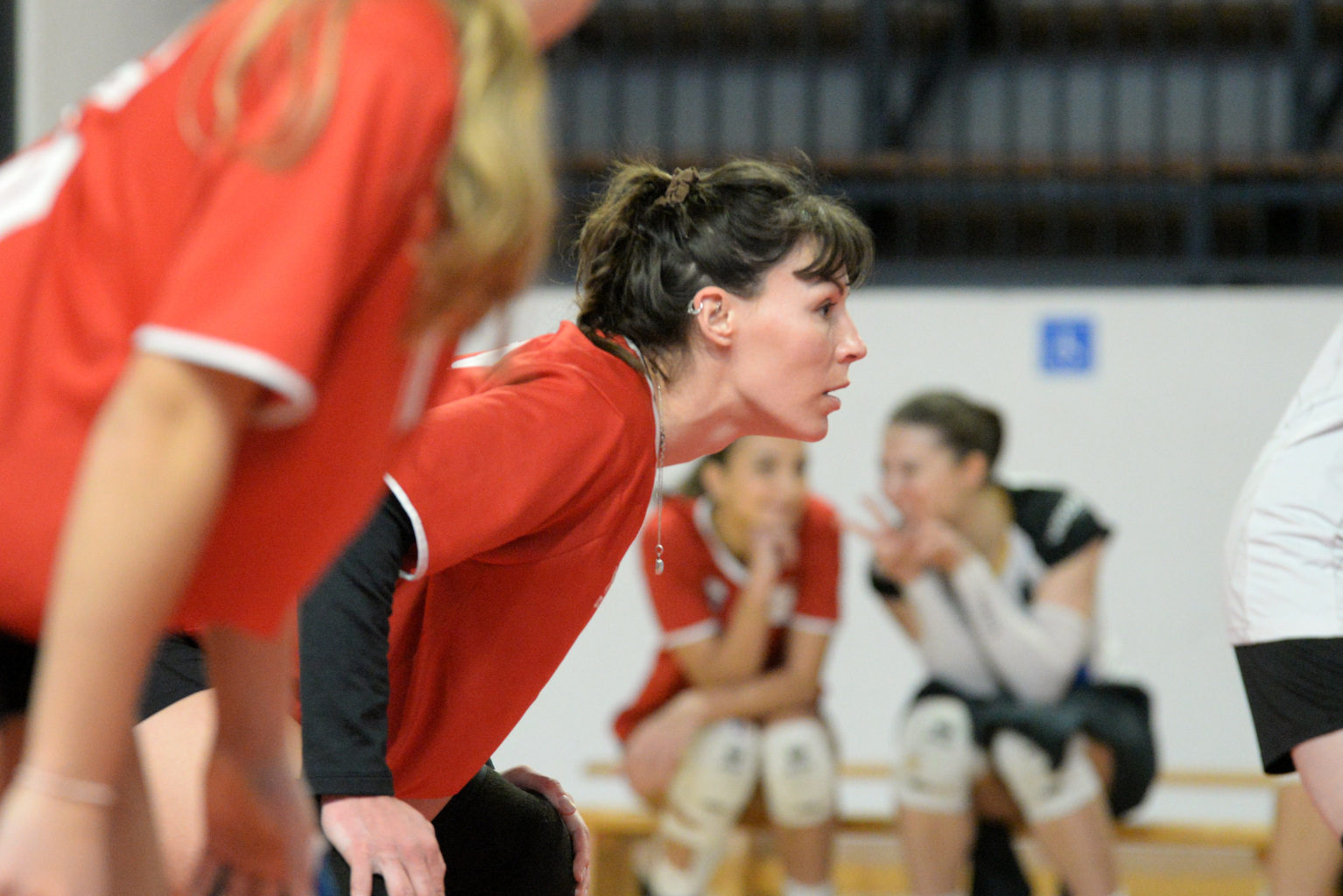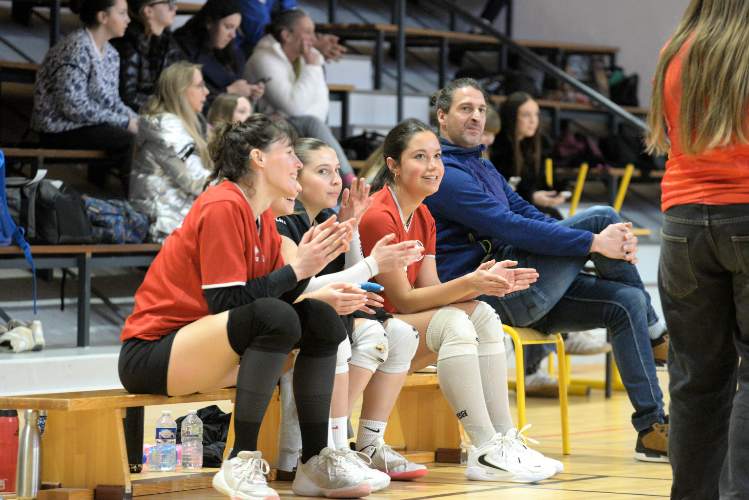 La joie de l'équipe au deuxième set