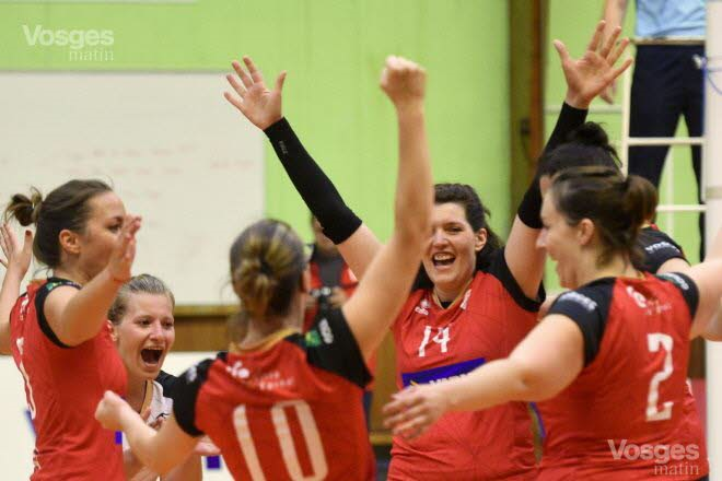 Peu avant 22 heures, l’attaque alsacienne terminait dans le filet. Et le banc spinalien s’est levé comme un seul homme. N’y voyez pas du machisme, mais c’est l’expression. Les Spinaliennes pouvaient alors exulter. Mathilde Oriel et Marie Rochefeuille avaient même les larmes aux yeux sur des joues rougies par l’effort. Une véritable délivrance pour tout un groupe. Bruno Manessier, capitaine du bateau, avait déjà pu faire le spectacle et ne tenait plus en place. L’issue de la rencontre ne faisait plus de doute. Ce n’était qu’une question de minutes,. Alors que de l’autre côté du filet, on avait déjà compris qu’Epinal était supérieur.
