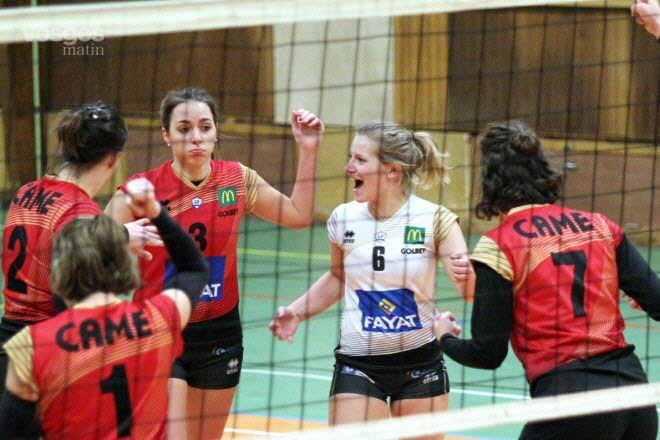 Très agressives aux services dès l’entame, les locales mettaient les visiteuses sous pression (8-4 puis 17-8) et elles maintenaient l’étreinte pour empocher la première manche en moins de 20’. Alors que tout allait bien, le CAM Epinal multipliait les fautes au point de connaître un léger frisson (4-6 et 13-15). Madeline Millery et Mathilde Oriel montraient la voie de la révolte et Ruelisheim ne résistait pas bien longtemps (21-15, 25-17). C’est avec Léa Grimaud sur le terrain que les Vosgiennes déroulaient tout au long du 3e set pour boucler la rencontre sur un sévère 25-06.
