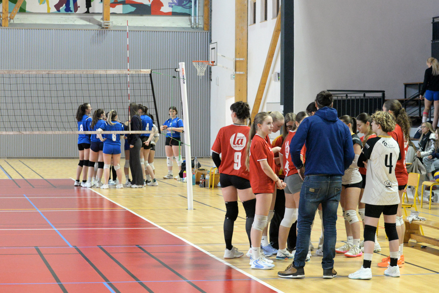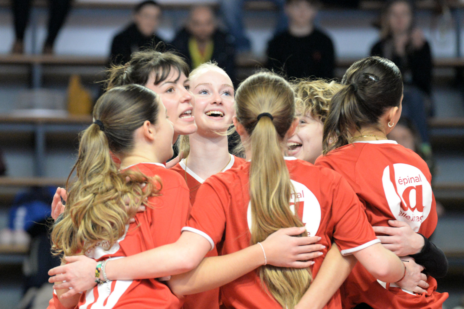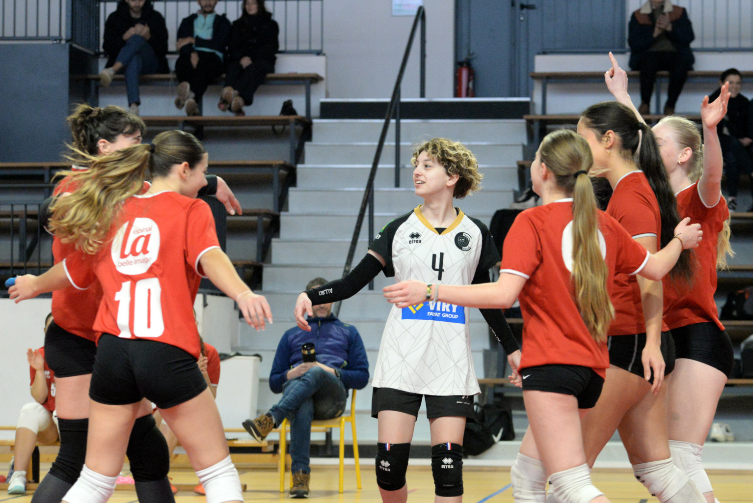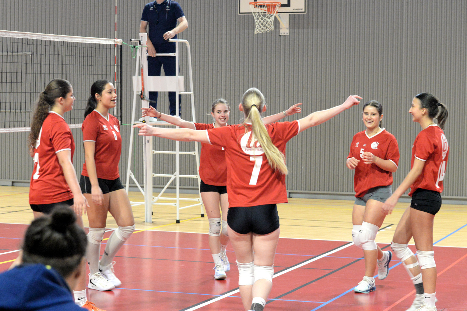 La joie de l'équipe au deuxième set